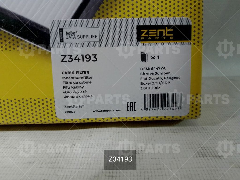 Фильтр салонный ZENTPARTS для Fiat Professional DUCATO X290-X295 (2014 - ) (Кат.номер: Z34193)